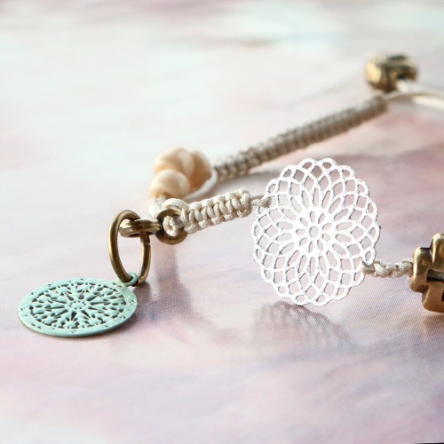 Geef je sieraad een bijzondere twist door er een leuke bohemian hanger aan te bevestigen. Deze trendy armbandjes en oorbellen zijn gemaakt van leuke fijne kraaltjes, met o.a. facetkraaltjes en kralen van DQ metaal. De artikelen die we hebben gebruikt vind je onderaan deze pagina. De leuke boho hangers zijn verkrijgbaar in schitterende pastel kleuren. Deze zijn super leuk om te combineren met andere lichte kleuren. Door boeddha kralen en macramé te verwerken in de sieraden set ontstaat er een mooi geheel. Speel met kleurtjes om het ontwerp minder of meer contrast te geven. Gebruik onze onderdelen van DQ metaal om trendy oorbellen te maken. Met buigringen kun je de bohemian hangers aan je design bevestigen. Door te combineren met zoetwaterparels, glasparels en schelp kralen ontstaat er een prachtige creatie!