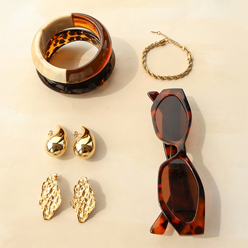 Resin armbanden met luipaardprint Gold-transparent light amber brown-black