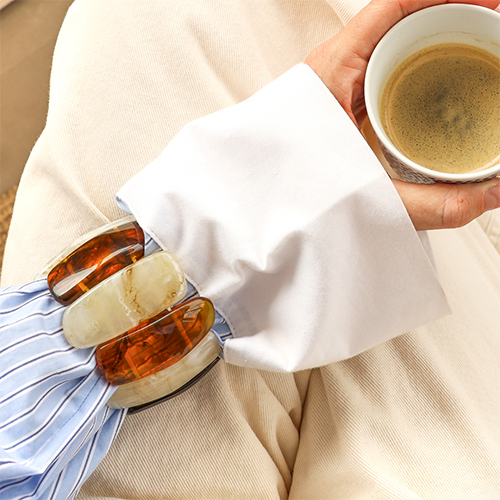 Resin armbanden bangle Transparent amber brown-off white-beige