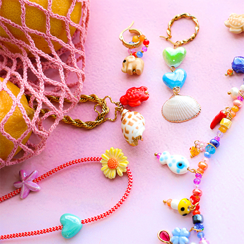 • Bedels en tussenstukken met gedroogde bloemetjes
