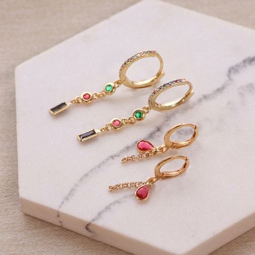 Zirkonia rainbow creolen met oogje Gold