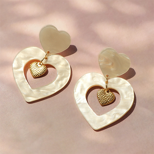 Roestvrij stalen (RVS) Stainless steel oorbellen/oorstekers hartje gehamerd met oogje Goud