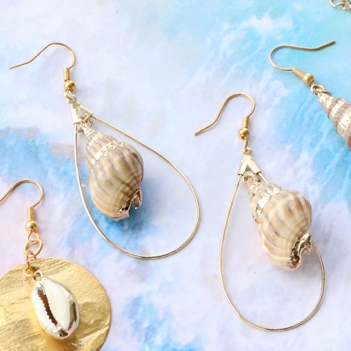 De oorbellen uit deze set maak je gemakkelijk met onze sieraadonderdelen voor oorbellen, je vind alle benodigdheden hieronder gesorteerd. makkelijk he? Combineer de bedels met gouden onderdelen om de gouden details van de schelpen extra goed uit te laten komen. Verder zijn de schelpen nog leuk in combinatie met kleine rocailles, DQ leer suède en ball chain.
