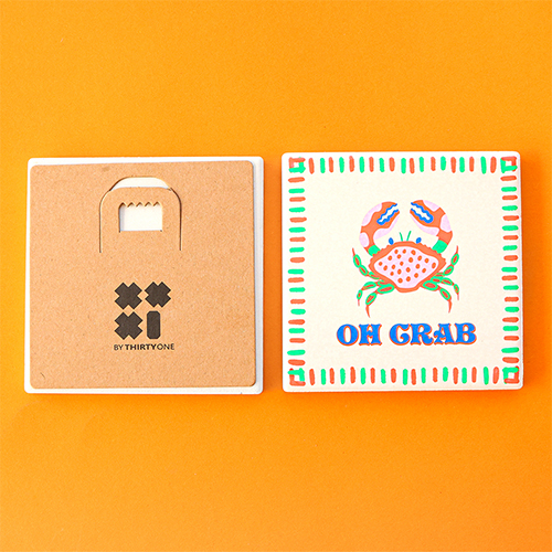 BY31® Tegeltje met tekst "Oh crab" Light peach-red-green-blue