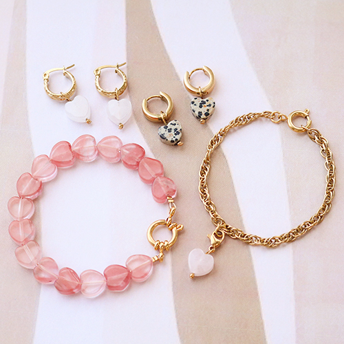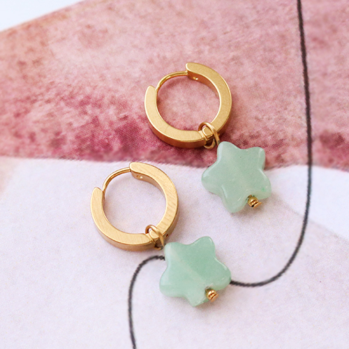 Wij zijn helemaal dol op de nieuwe collectie natuursteen kralen! Vandaar dat we snel aan de slag zijn gegaan om kleurrijke sieraden te ontwerpen. In deze inspiratie set hebben we de hart en ster natuurproducten gecombineerd met diverse goudkleurige rvs sieraad onderdelen. Wat heb je allemaal nodig voor het maken van deze hippe oorbellen? Een rvs oorbel onderdeel, een nietstift, een rvs kraaltje, een rondbektang en natuurlijk jouw favoriete natuursteen kraal. De kralen schuif je over de nietstift en daarna buig je een oogje met een rondbektang. Hang de bedel aan het oorbel onderdeel en you’re ready to shine! Combineer meerdere natuursteen kralen samen met een rvs kapittelslot voor een eye-catching armband. Om de look compleet te maken kan je een ketting creëren met rvs jasseron, een kettelstift en een natuursteenkraal. Veel plezier met het maken van stralende sieraden!