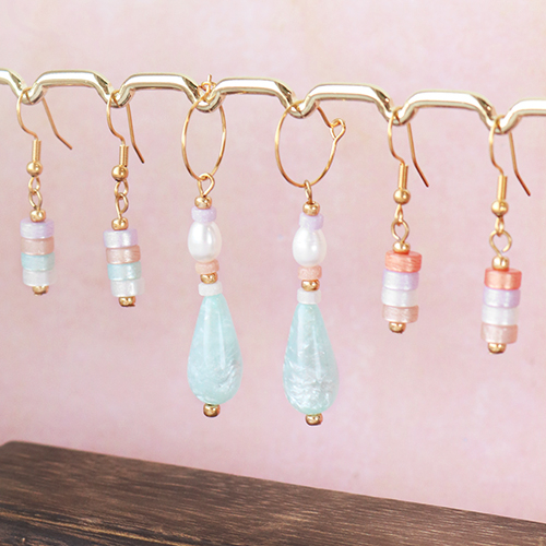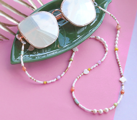 Op zoek naar sieraden inspiratie in de trendkleuren van dit moment? In deze inspiratie set hebben we stijlvolle sieraden gemaakt met pastelkleurige Polaris Elements kralen. Door het combineren van zoetwaterparels, rocailles kralen, schelpkralen en de Polaris Elements kralen ontstaat er een modieuze sieraad met een luxe uitstraling. Creëer oorbellen door de Polaris Elements kralen, rocailles glaskralen en schelpkralen aan een nietstift te schuiven. Bevestig deze vervolgens aan een rvs oorbel onderdeel met een rondbektang. Maak een bijpassende armband door dezelfde kralen te rijgen aan metaaldraad en te sluiten met behulp van knijpkralen, een karabijnslot en een verlengketting. Om de zomerse look helemaal compleet te maken kan je ook een trendy zonnebril koord ontwerpen.