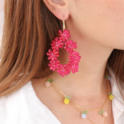 Top facet oorbellen druppel Gold-neon pink