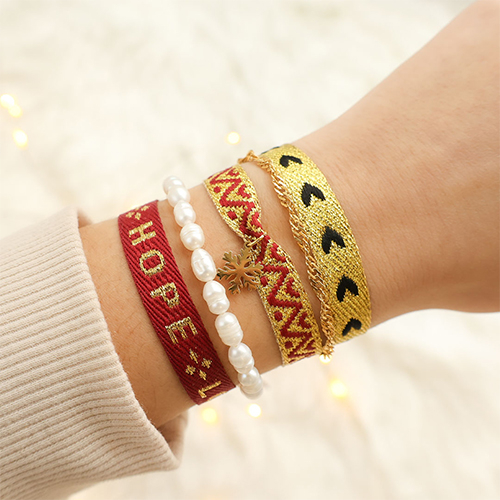 Lint met tekst "love faith hope" Red-gold