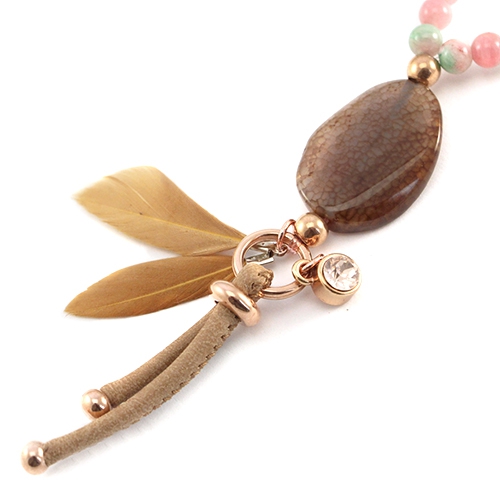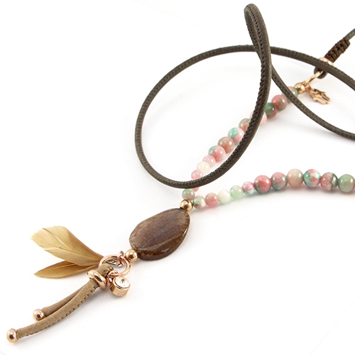Deze prachtige herfsttinten, het gestikte leer en de statement half edelsteen natuursteen kralen… ze maken deze sieraden tot een prachtig geheel. Gebruik vrolijke kleuren zoals roze en turqoise met natuurlijke tinten voor die perfecte balans. De trend van het najaar bevat veel elementen van leer en andere natuurlijke- look producten. Het imi gestikt leer is dus een musthave voor dit seizoen. Go nature!