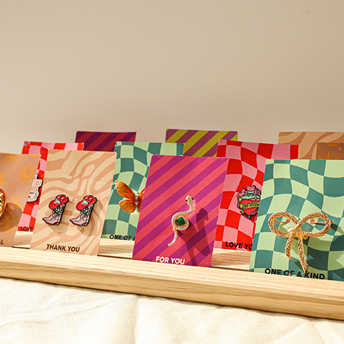 Deze nieuwe collectie broches en pins zit vol verrassingen! Van een slang en bliksemschicht tot een schattig schildpadje of tosti-ijzer. De pins zijn voorzien van inspirerende teksten zoals "good vibes only" en "keep on smiling". Je shopt de broches en pins nu met bijpassende sieradenkaartjes in vrolijke kleuren en patronen. De sieradenkaartjes zijn speciaal ontworpen door ons eigen team. Bestel ze snel, want dit wil je toevoegen aan je eigen collectie!