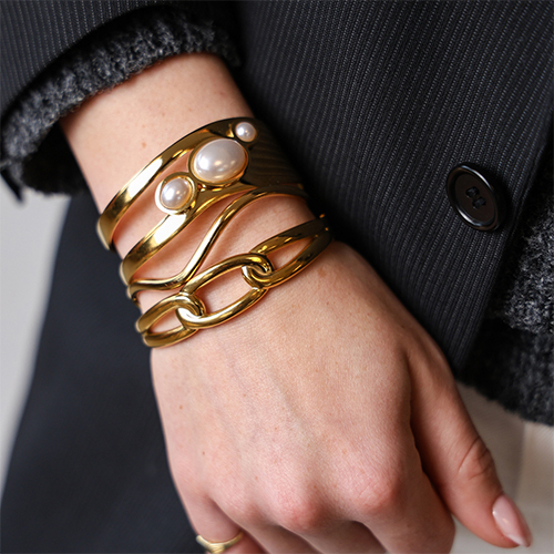 Roestvrij stalen (RVS) Stainless steel armbanden bangle met imitatie parels Gold-white