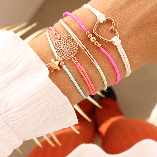 Armbandjes maken met macramé draad is super leuk om te doen en ze passen ook nog eens perfect bij een zomerse look! De vrolijke kleuren macramé draad en de trendy DQ metalen kralen, bedels en tussenstukken zijn gegarandeerd een perfecte combinatie! Probeer ook zeker af en toe eens nieuwe technieken uit en laat je verrassen door het resultaat. Bekijk bijvoorbeeld onze nieuwste inspiratie video over de sliding knot en ga zelf aan de slag! Succes!