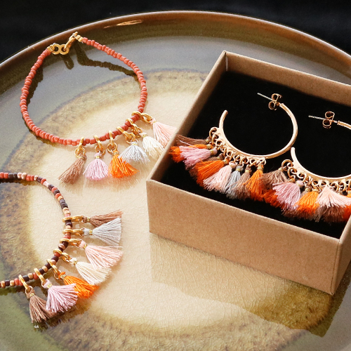 Haal de herfst in huis met deze fantastische nieuwe collectie kleine kwastjes. Deze kleurrijke kwastjes vrolijken elk sieraad op en creëren een herfstige vibe. Wij hebben de nieuwe collectie kwastjes gebruikt om armbandjes en oorbellen te maken. De armbandjes zijn gemaakt door Miyuki rocailles te rijgen op metaaldraad. We hebben gekozen voor creool oorbellenmet ogen, waar we vervolgens gemakkelijk de kleine kwastjes aan hebben bevestigd. Sieraden maken met deze items hoeft totaal niet lastig te zijn!