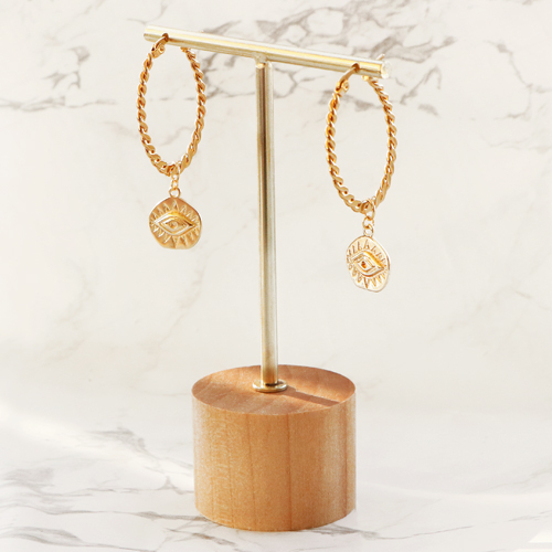 Sieraad display T-vorm met houten voet voor oorbellen (3st.) Naturel (natuurlijke kleur van het hout)-gold