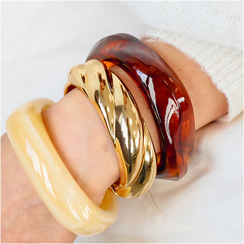 Onze bestsellers zijn terug! Deze nieuwe resin armbanden zijn verkrijgbaar in nieuwe warme kleuren en vormen. Ze zijn bold, kleurrijk en helemaal on trend. Mix & match ze met onze metalen armbanden voor een unieke arm party!