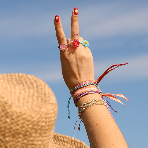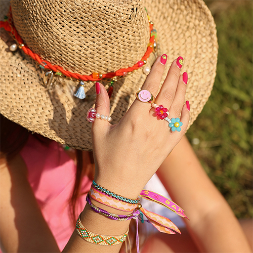 Laat je inspireren en ontdek de festival musthaves! Kettingen met acryl (letter) kralen, kant-en-klare kettingen, polymeer fruitjes en keramiek smileys zijn helemaal in. Voor hoedaccessoires kies je elastisch lint, acryl kralen, jasseron, kwastjes, parels en fruitbedels. Armbanden met tekstlint of kant-en-klare geweven armbandjes zijn een mega trend. Haaraccessoires zoals bloemen/schelpen klemmen, creolen met bedeltjes en acryl kralen mogen zeker niet ontbreken.