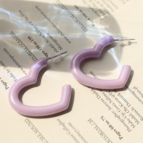 Trendy oorbellen hart Lilac purple-pearl shine coating