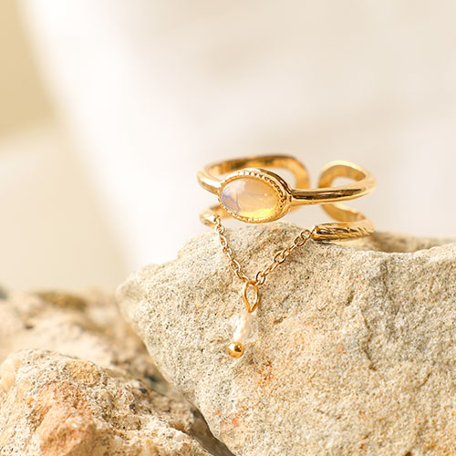• Roestvrij stalen (RVS) Stainless steel ringen met natuursteen Gold-off white-white