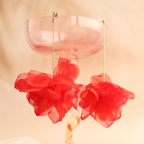 Trendy oorbellen/oorstekers chiffon bloem Red-gold