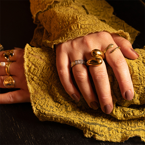 • Roestvrij stalen (RVS) Stainless steel ringen druppels Gold