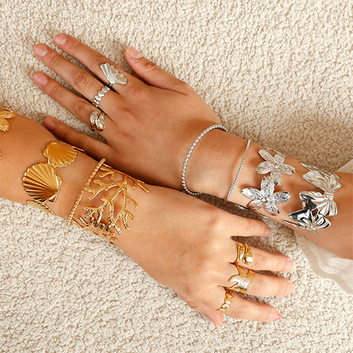 Deze nieuwe collectie rvs bangle armbanden en ringen is een echte must-have! Met prachtige vormen zoals schelp, bloem en strik voeg je moeiteloos stijl toe aan je collectie. Mix & match en maak je sieradencollectie compleet!