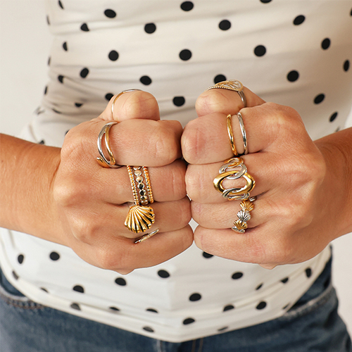 Roestvrij stalen (RVS) Stainless steel ringen schelp Silver-gold