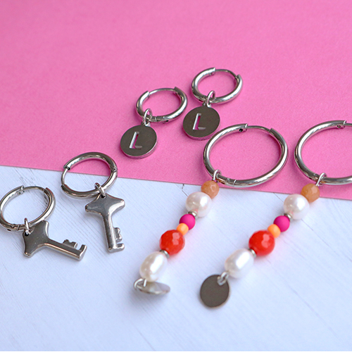 Op zoek naar oorbellen inspiratie voor het komende seizoen? In deze inspiratie set hebben we verschillende oorbellen gemaakt met rvs creolen. Deze creolen lenen zich uitstekend voor het creëren van gepersonaliseerde oorbellen. Ontwerp bijvoorbeeld oorbellen door een mooie natuursteen facet geslepen kraal over de oorbel te schuiven. Of kies voor een tussenstuk in hartvorm. Deze items kun je makkelijk onderling verwisselen en op deze wijze de creolen gebruiken als basis en iedere dag van stijl veranderen. Bevestig verschillende lengtes jasseron aan een buigring en transformeer je oorbel in een trendy sieraad! Je kunt ook verschillende kralen afwisselend aan een nietstift rijgen en het oogje dat je bovenaan maakt met behulp van een rondbek tang, over de creole schuiven. Gebruik bijvoorbeeld rocailles in diverse kleuren en zoetwaterparels voor een chique look!