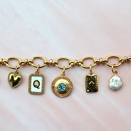 • BY31® Roestvrij stalen (RVS) Stainless steel bedels kaart schoppen Gold