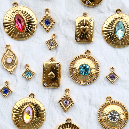 • BY31® Roestvrij stalen (RVS) Stainless steel bedels kaart ruit Gold