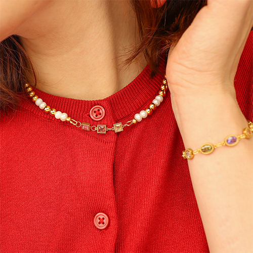 Roestvrij stalen (RVS) Stainless steel tussenstukken zirkonia vierkant Gold-purple