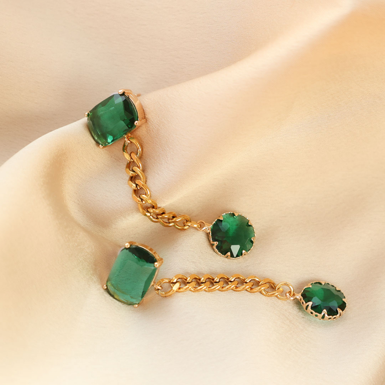Oorbellen / oorstekers van Crystal Glass met oogje rechthoek Green-gold
