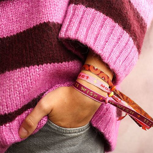 • Lint met tekst bloem Orange-light pink