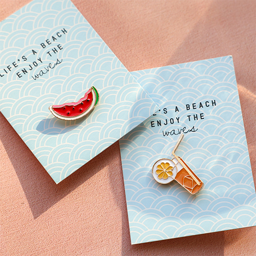 Deze nieuwe collectie broches en pins brengt de zomer naar je toe! De broches zijn verkrijgbaar in diverse vormen zoals cactus, bloem, kers en citroen. De pins zijn verkrijgbaar met diverse teksten en zomerse designs zoals aardbei, palmboom, flamingo en appel. Ideaal om je outfit een vrolijke touch te geven!