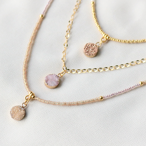 Wanneer je sieraden maakt met onze nieuwe natuursteen hangers, is succes verzekerd. De prachtige hangers kunnen namelijk elk sieraad laten stralen. Wij hebben er voor gekozen verschillende sieraden te maken en daardoor is goed te zien dat door de hangers te combineren met jasseron, facet kralen of DQ metalen kralen je altijd een fantastisch effect krijgt. De kleurrijke hangers doen elk sieraad opleven.