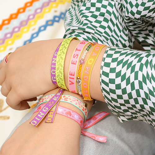 Nieuwe serie lint met tekst unieke designs. De linten zijn exclusief ontworpen door ons eigen design team. Knip de linten op maat en sluit ze met een smart bead stopper of lintklemmen voor de mooiste armbanden, chockers en enkelbandjes. Mooi te combineren met jasseron.