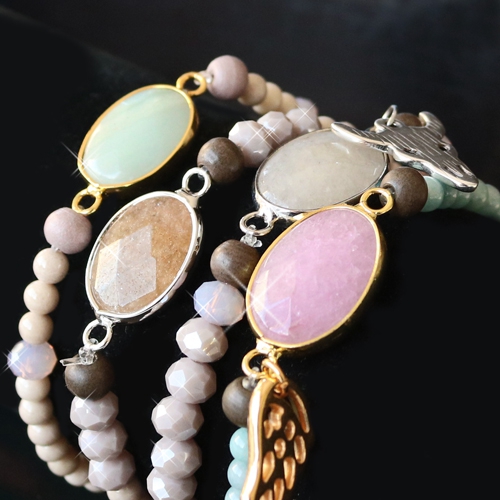 Ga voor een eigenzinnige party look en gebruik onze prachtige half edelstenen hangers als stijlvolle blikvangers. Deze leuke sieraden hebben wij gemaakt door zachte kleuren te gebruiken en mooie materialen te combineren. Gebruik facetkraaltjes en houten kralen om deze look te creëren. Voor de armbandjes kunt u ook glasparels en jade natuursteen kralen gebruiken. Combineer aardse tinten zoals grijs, bruin en groen om de natuurlijke uitstraling te benadrukken. Ook voor oorbellen zijn onze half edelstenen hangers uitermate goed geschikt. Gebruik hiervoor onze ondederlen van DQ metaal. Zo behaalt u het mooiste resultaat. Voor de afwerking gebruik je leuke facet kraaltjes en onze trendy bedels van DQ metaal!