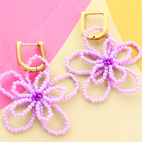 Roestvrij stalen (RVS) Stainless steel bedels bloem Lavender purple