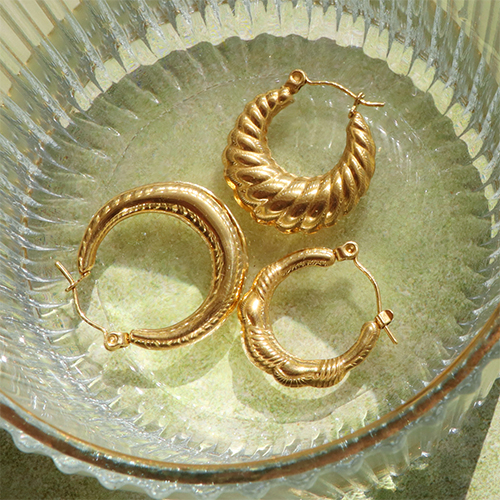 Ontdek nu de verschillende designs van deze nieuwe serie rvs oorbellen! Alle varianten zijn verkrijgbaar in goud- en zilverkleur. Je kunt de oorbellen zo dragen, of ze personaliseren door er een kant-en-klare bedel of een zelfgemaakte bedel aan te hangen.