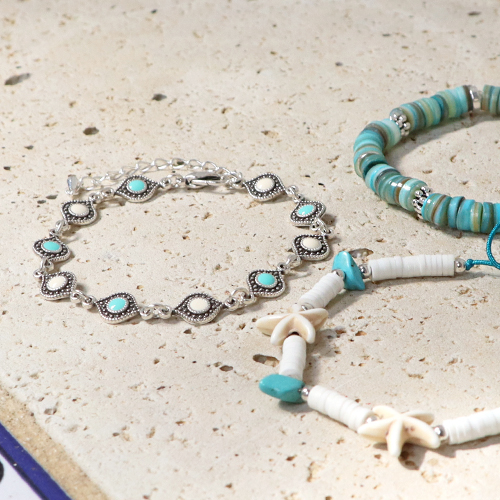 Keramiek turquoise kralen zeester Off white beige