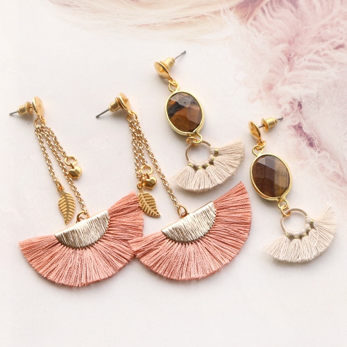 Wil je ook zelf trendy oorbellen ontwerpen? Neem dan zeker even de tijd om deze inspiratie te bekijken. Met deze nieuwe kwastjes hebben we oorbellen ontworpen, gecombineerd met DQ metaal en tussenstukken van halfedelsteen. Met deze sieraadonderdelen creëerden we de allerleukste fringe oorbellen met de trendkleuren van dit seizoen. Vind jij ze ook prachtig?