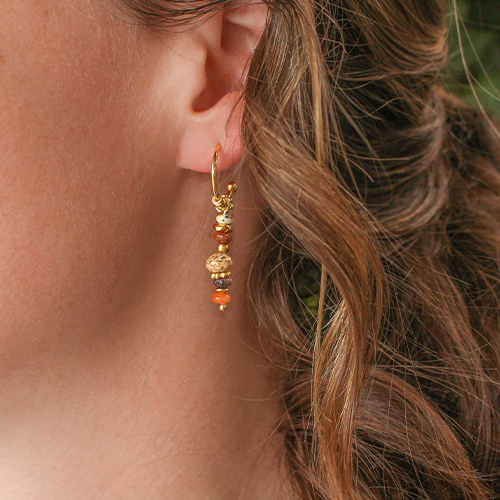 Op zoek naar inspiratie voor je nieuwe oorbellen collectie? Ga dan aan de slag met deze natuursteen kralen. Kies bijvoorbeeld een oorbel creolen, rijg de rondellen aan artistic wire en wikkel het geheel om de creolen terwijl je ervoor zorgt dat er één kraal tegelijk aan de buitenkant terecht komt. Je kunt ook van metaaldraad zelf een vorm maken en een combinatie van kralen aan het draad rijgen. Maak bovenaan een oogje dat je bevestigt aan een oorbel onderdeel. Ook ear cuffs kun je zelf buigen met metaaldraad en er met artistic wire of goud macramé draad de natuursteen kralen rondellen omheen wikkelen.