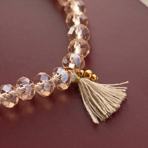 Ondanks dat top facet armbandjes een kant-en-klaar artikel zijn, kun je hier alsnog wat leuks mee doen. De facet armbandjes zijn geregen op elastisch rijgdraad en kunnen daardoor op elke plek die je maar wilt worden voorzien van buigringen waaraan je vervolgens een bedel hangt. Wij hebben er voor gekozen stainless steel bedels te gebruiken. De verschillende materialen van de facet kralen en de rvs bedels geven namelijk samen een speels effect. Vergeet niet je top facet armband met bedels als hij klaar is om een sieraad kaartje te doen en in een organza zakje te presenteren.