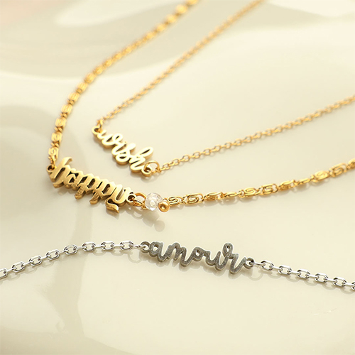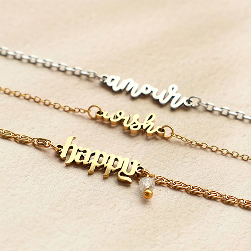 Deze nieuwe serie rvs tussenstukken woorden, ontworpen door ons eigen team, bevat inspirerende woorden zoals wish, happy, amour, dreamer en adore. Perfect voor layered kettingen, gemixte armbanden en oorbellen. Dit wil je niet missen!
