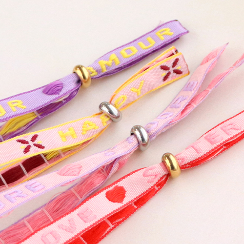 Gebruik dit mooie lint met tekst voor het maken van armbanden die je sluit met bijvoorbeeld een smart bead stopper of een acryl letterkraal met groot rijggat. Maak daarnaast mooie armbanden met diverse kralen die je tegelijk met de armbanden van lint kunt dragen. Rijg kleurrijke rocailles glaskralen op elastiek draad of maak een armband waar je zoetwaterparels afwisselt met rocailles glaskralen, smiley kralen en jasseron ketting.