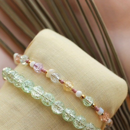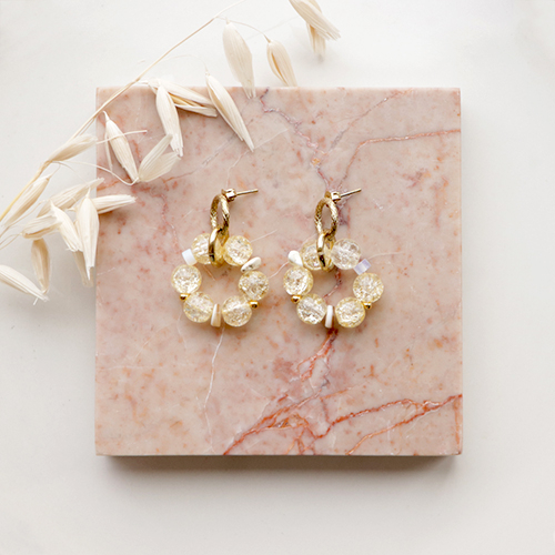 Voor het ontwerpen van oorbellen met deze glaskralen, kun je oorstekers of creolen als basis nemen. Rijg de glaskralen op de grote creolen en wissel ze, voor een leuk effect, af met kleine gouden knijpkralen. Armbanden maak je door de glaskralen te combineren met natuuursteen kralen en schelp kralen. Gebruik goudkleurig macramé draad of een grove jasseron ketting die je sluit met een mooi boeislot.