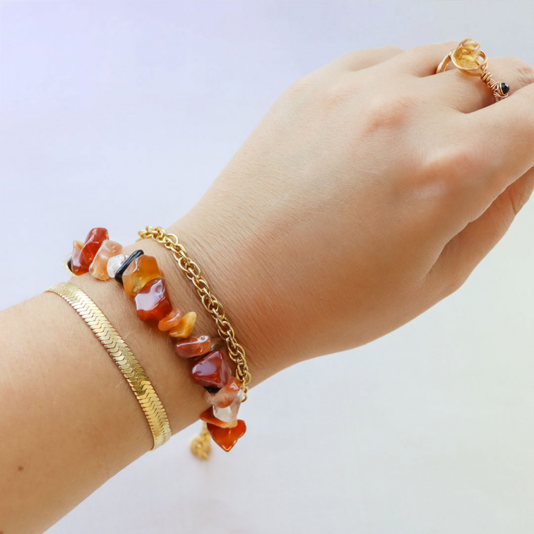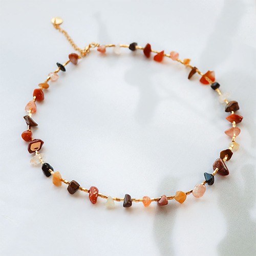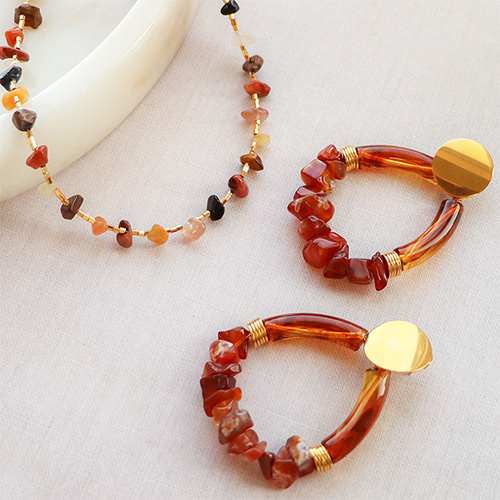 De chips stone kralen zijn perfect voor een sieraden set voor je najaarscollectie. Rijg een eenvoudige ketting waarbij je de chips stone kralen afwisselt met Miyuki rocailles. Of gebruik diverse soorten jasseron ketting waar je kettingen mee maakt. Ontwerp een mooie dubbele armband die voor de helft bestaat uit jasseron en voor de andere helft uit chips stone kralen. Een bijpassende ring van Artistic Wire mag natuurlijk niet ontbreken in deze set!