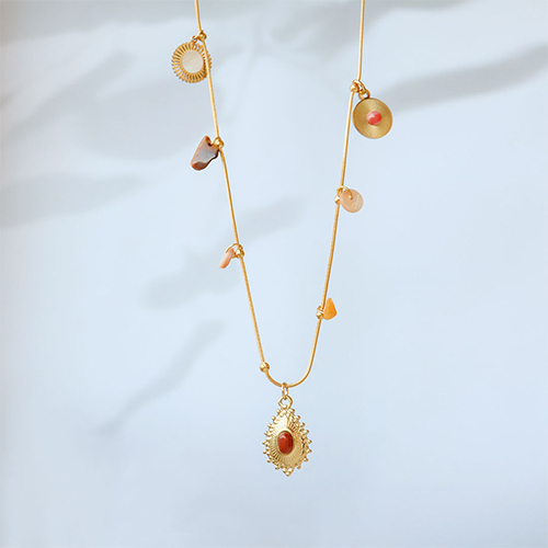 Roestvrij stalen (RVS) Stainless steel bedels druppel met natuursteen Gold-grand canyon red