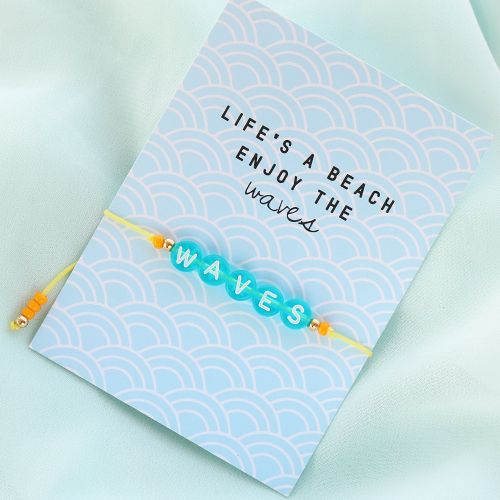 Inspiratie nodig voor het maken van leuke zomerse sieraden? Wij gingen je voor en maakte met macramé en acryl letterkralen deze toffe armbanden. Je kunt de acryl letterkralen namelijk over het macramé draad rijgen en zo armbanden maken met leuke quotes of namen! Natuurlijk kun je het macramé draad ook knopen of vlechten in leuke patronen. Om de set met armbanden compleet te maken kun je op elastiek een combinatie van acryl letterkralen en Miyuki kralen rijgen. Zo krijg je een afwisselende set met items die perfect bij elkaar passen! Naast armbanden kun je met deze items ook super leuke oorbellen maken. Presenteer deze fantastische sieraden op de nieuwste kleine sieradenkaartjes en klaar is jouw zomercollectie!