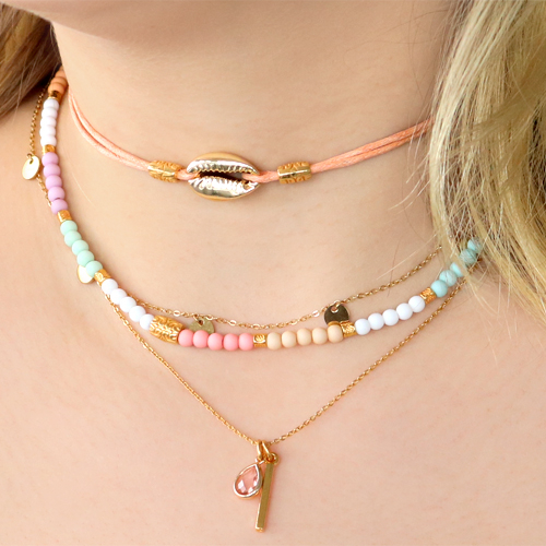 Het is lente! Dat betekent tijd voor een collectie met vrolijke, lichte kleuren! De nieuwe collectie acryl kralen is daar perfect voor. Wij maakten met de acryl kralen kettingen en oorbellen. Je kunt bijvoorbeeld de acryl kralen rijgen op metaaldraad. Vul de ketting helemaal met de acryl kralen en wissel tussendoor af met DQ metalen kralen. Daarnaast maakten wij ook een ketting van jasseron met in het midden een stuk waarbij met kettelstiften is gewerkt. Elke kraal is op een kettelstift geregen en tot een soort tussenstuk gemaakt die daarna weer aan elkaar zijn verbonden. Met de kettelstiften of nietstiften kun je ook een mooie bedel creëren die je aan een oorbel onderdeel of aan het slotje van de ketting kunt bevestigen. ‘’It’s all in the details!’’